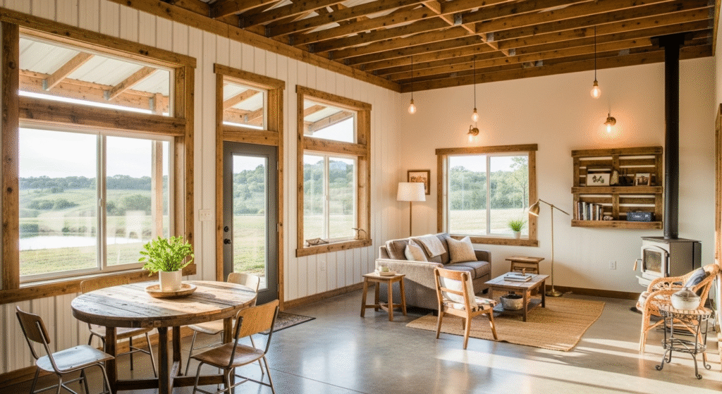 Designing the interior of a barndominium on a budget is all about creativity and smart choices. Simple décor ideas can make a space look stylish without spending a fortune. Minimalist layouts, open shelving, and multifunctional furniture help maximize space and create a modern feel. Using mirrors, plants, and affordable wall art can enhance aesthetics without major expenses.