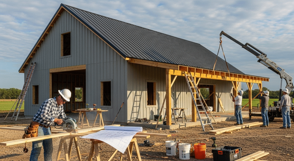 Construction time varies depending on size, design, and whether you use professionals or DIY methods. A simple barndominium with basic finishes can be completed in 3–6 months, while larger or customized designs may take 9–12 months. Efficient planning, pre-fabricated materials, and a clear budget can shorten construction time. Staying organized and coordinating contractors effectively ensures the project stays on schedule and within budget.