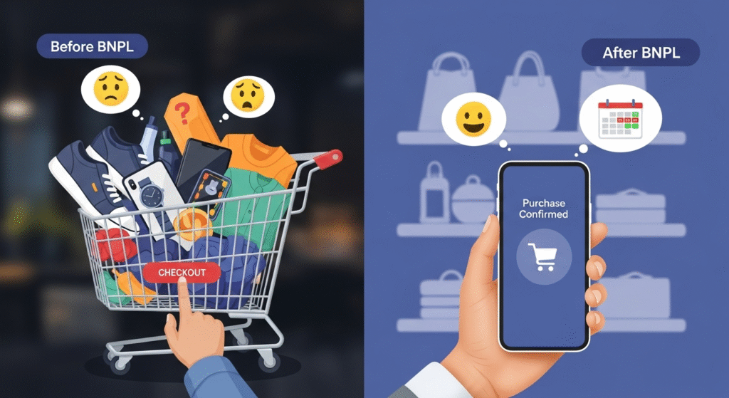 Another major advantage of Buy Now Pay Later (BNPL) is the increase in average order value (AOV). Customers are more willing to buy additional items or upgrade to premium products when payments are divided over time. This directly increases revenue per transaction. Furthermore, BNPL helps businesses reach new demographics, especially younger consumers who prefer digital-first and interest-free payment methods over credit cards.