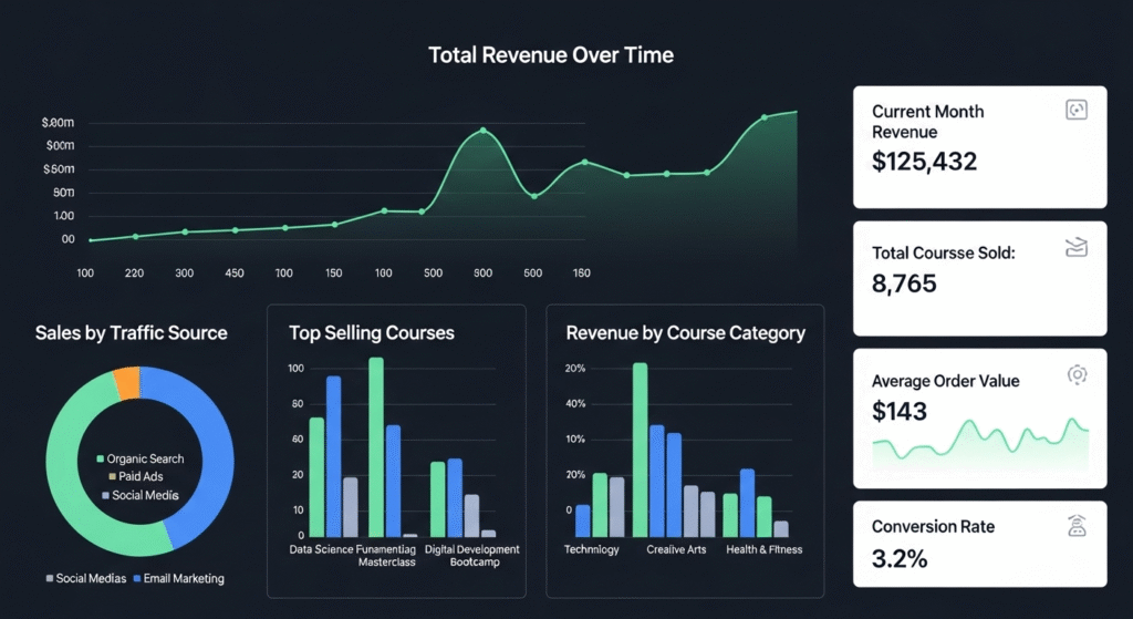 With your Online Course Profit Planner, you can also spot underperforming areas that may need optimization. For example, if one course consistently earns less, you might revisit its pricing, content, or marketing. Trend analysis also reveals whether your overall business is scaling effectively. Regular evaluation keeps your strategy data-driven and forward-focused. The insights you gain from these analytics help guide your decisions for future launches, investments, and income diversification strategies, ensuring continuous improvement year after year.